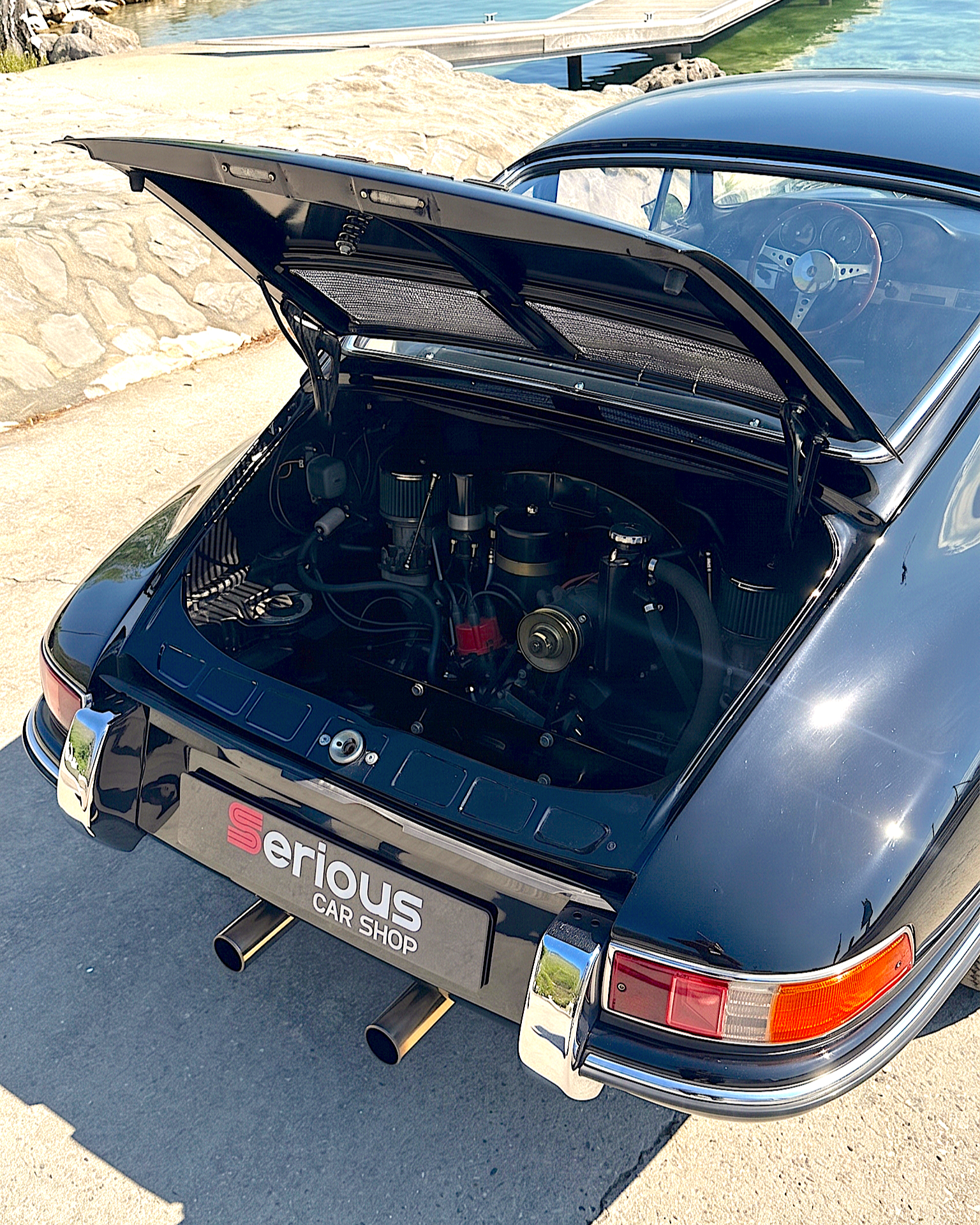 Serious Car Shop vous propose à la vente cette superbe Porsche 912 "3 compteurs" de 1966, présentée dans un noir Schwarz 041. Un exemplaire dit "Early" (début de production), recherché par les collectionneurs pour sa rareté, sa fidélité au design originel de Butzi Porsche représentant la transition de la 356 à la 911/912.
